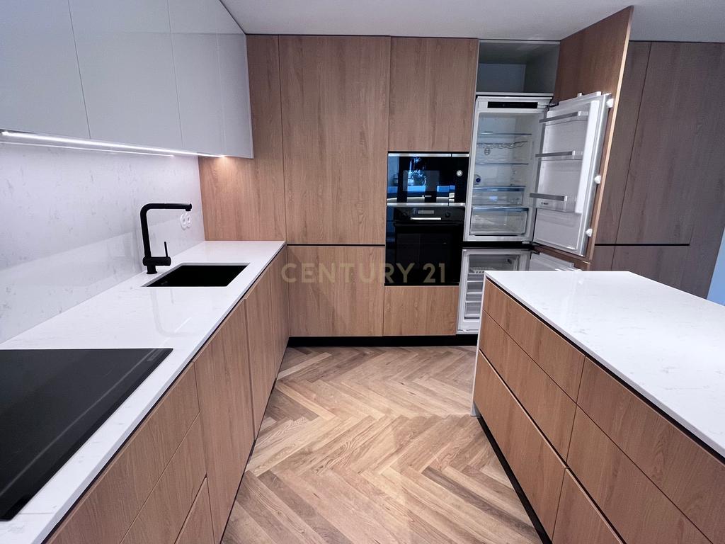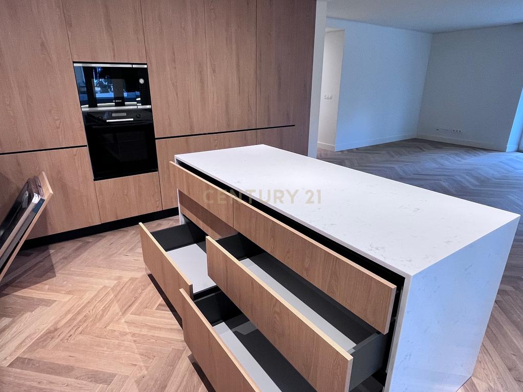 • Cozinha em open space com ilha central, equipada com eletrodomésticos Bosch, com ligação fluida à varanda.